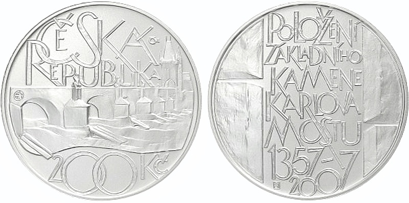 - Česká republika, 200 Kč 2007 běžná kvalita, 650. výročí položení základního kamene Karlova mostu