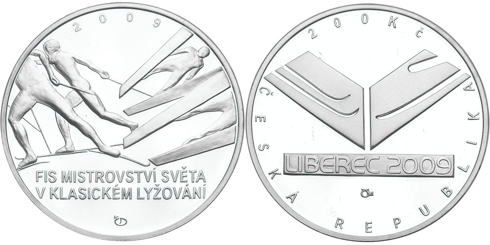 - Česká republika, 200 Kč 2009 proof, FIS mistrovství světa v klasickém l