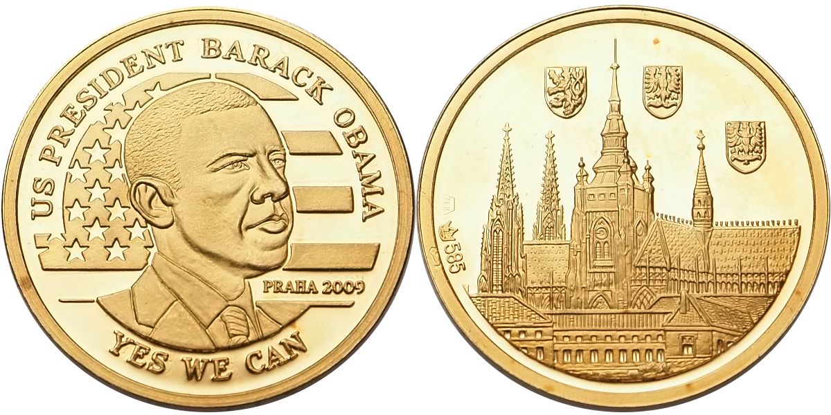 Au medaile Barack Obama v Praze, Au 585/1000, 3,55g