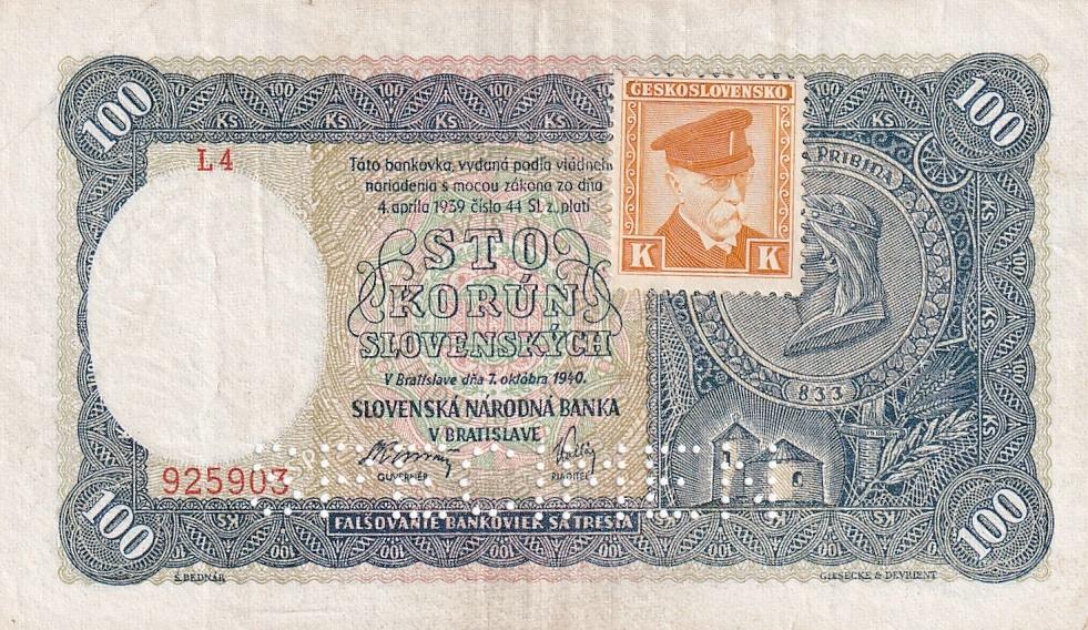Československo 1944 - 1945, 100 Korun 1940 kolkovaná, I. vydáníSkladem 1 ks150 Kč/ ks