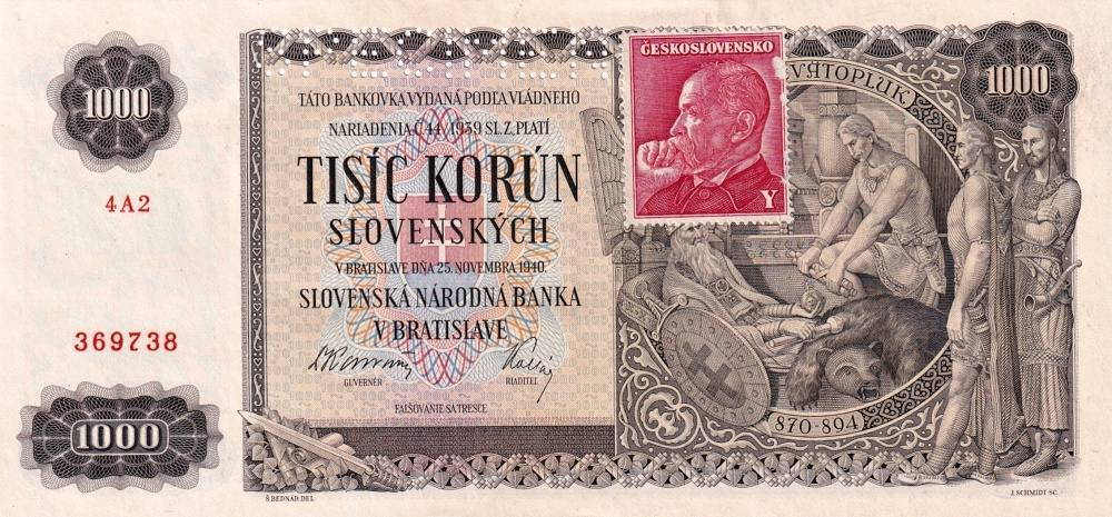 Československo 1944 - 1945, 1000 Korun 1940 kolkovaná SPECIMENSkladem 1 ks2 900 Kč/ ks