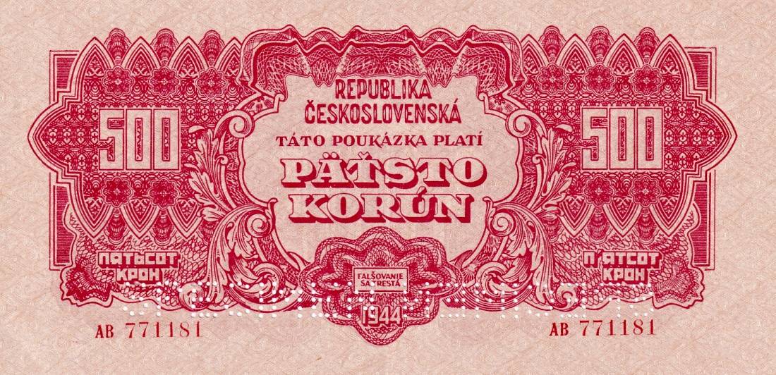 Československo 1944 - 1945, 500 Koruna 1944 2x SPECIMEN