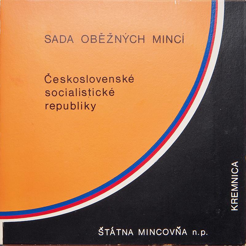 Kartonový přebal s vícebarevným potiskem (převládající barva oranžová) 130 x 130 mm, v přebalu modrá kartonová deska s vyzlaceným státním znakem ČSSR krytá čirou acetylcelulosovou fólií, v desce vsazené mince 5, 10, 20, 50 h, 1, 2, 5 Kčs (rubovou stranou vzhůru).