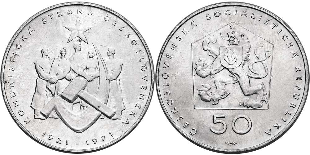 - Československo 1953 - 1993, 50 Kčs 1971, 50. výročí založení Ksč