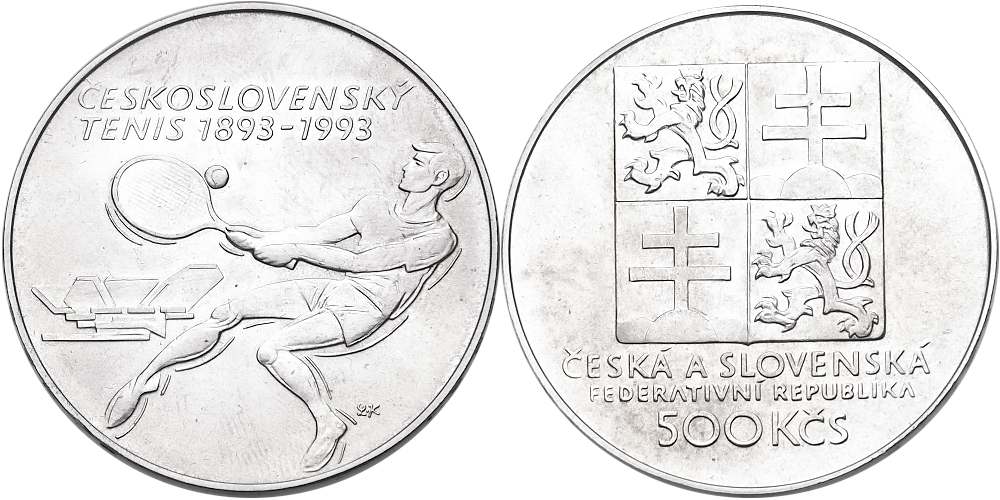 - Československo 1953 - 1993, 500 Kčs 1993 100. výročí založení prvního tenisového klubu