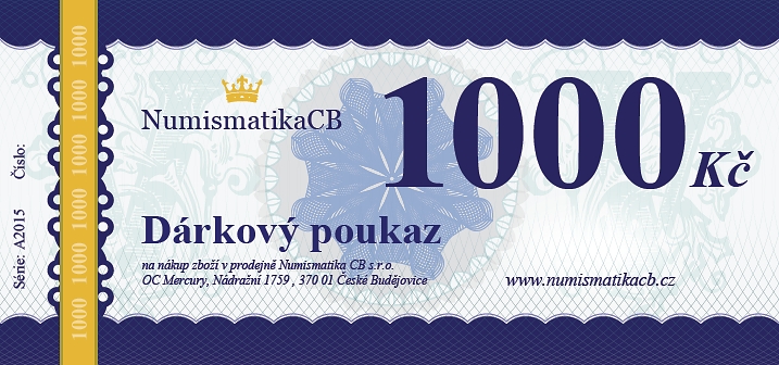 Poukázku lze uplatnit ve specializovaném obchodě Numismatika CB, DOC Mercury, Nádražní 1759, 370 01 České Budějovice.