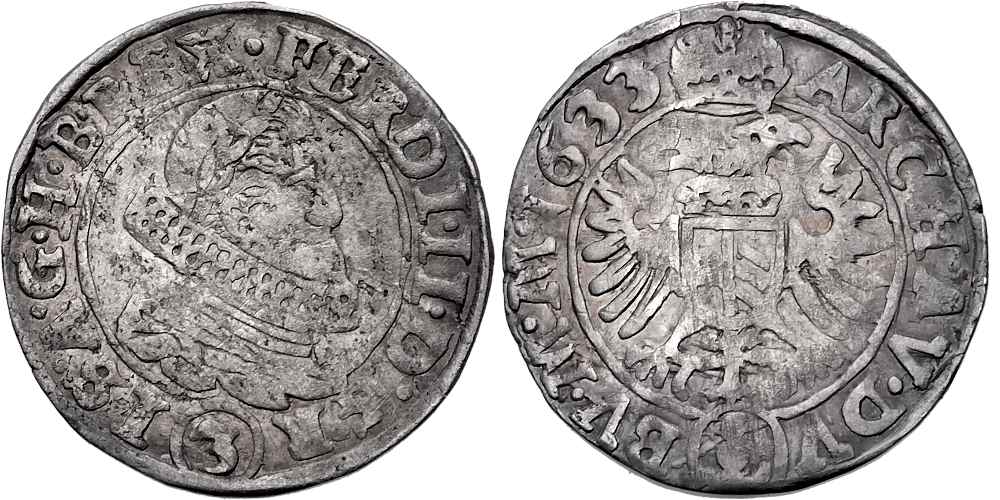 - Ferdinand II. 1619 - 1637, 3 Krejcar 1633