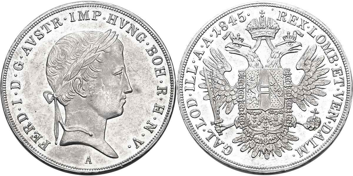 - Ferdinand V. 1835 - 1848, 1/2Tolar 1845 A