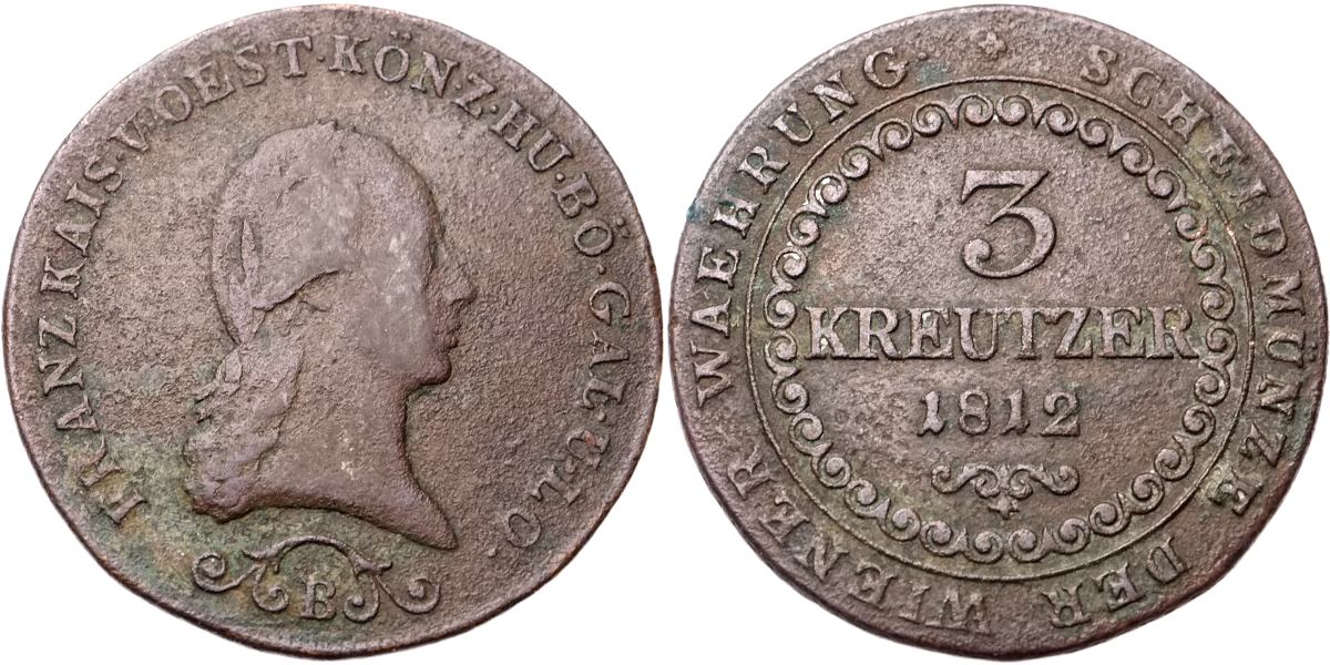 - František II. 1792 - 1835, 3 Krejcar 1812 B