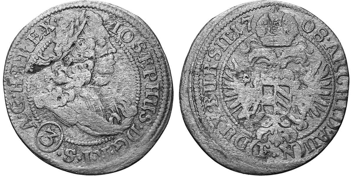 - Josef I., 1705 - 1711, 3 Krejcar 1708 FN