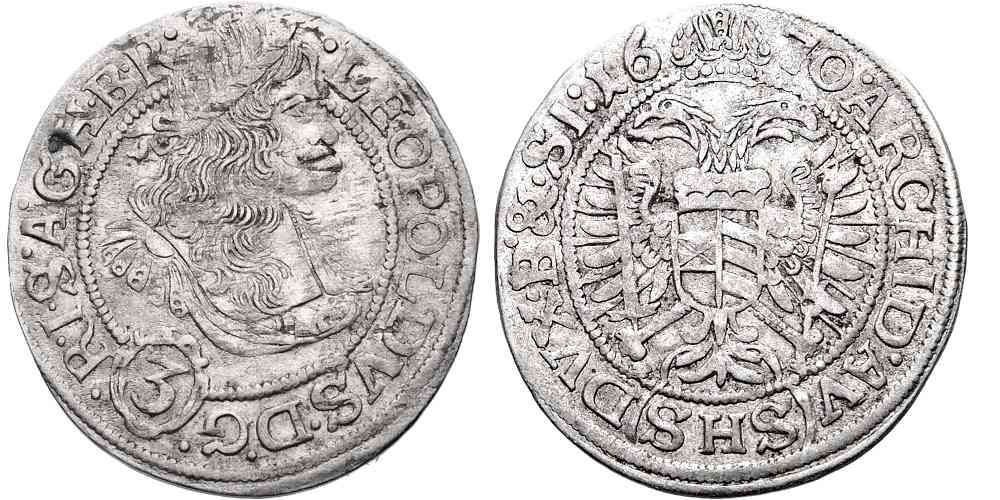 Leopold I. 1657 - 1705, 3 Krejcar 1670 SHS
