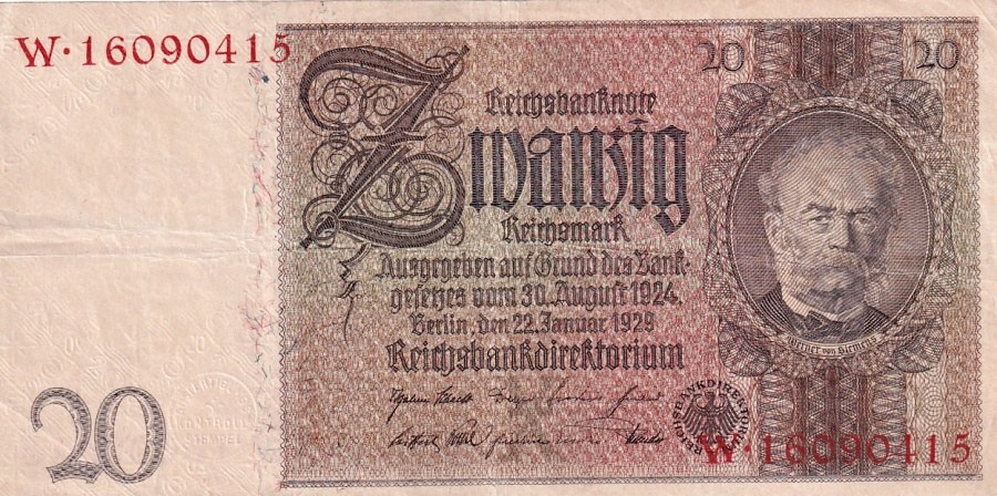 20 Reichsmark 22.01.1929, série W, Pick.181, stav 2-