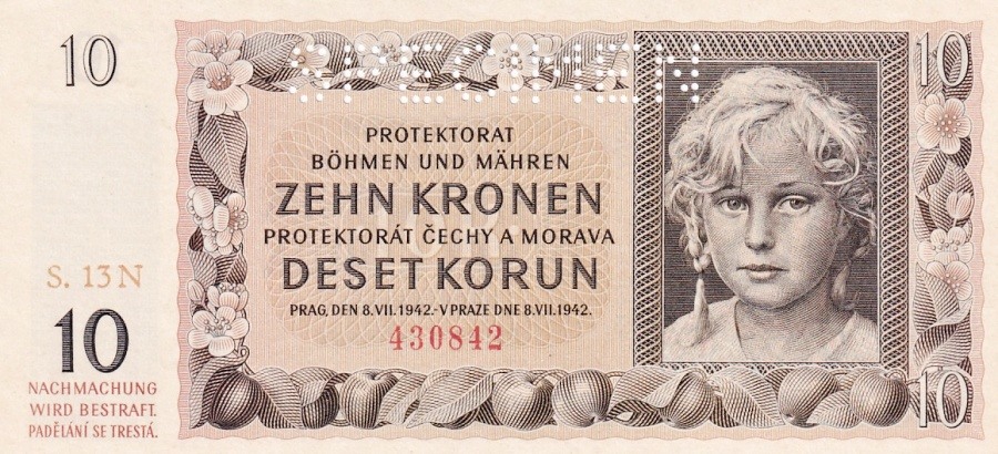 Protektorát 1939 - 1945, 10 Korun 1942 SPECIMEN
