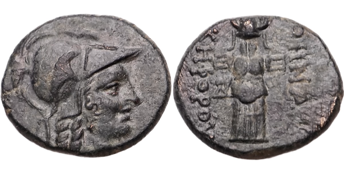 AE 19mm, A: hlava Atheny v přilbici vpravo, R: trofej, 5.5g, Sear.3960