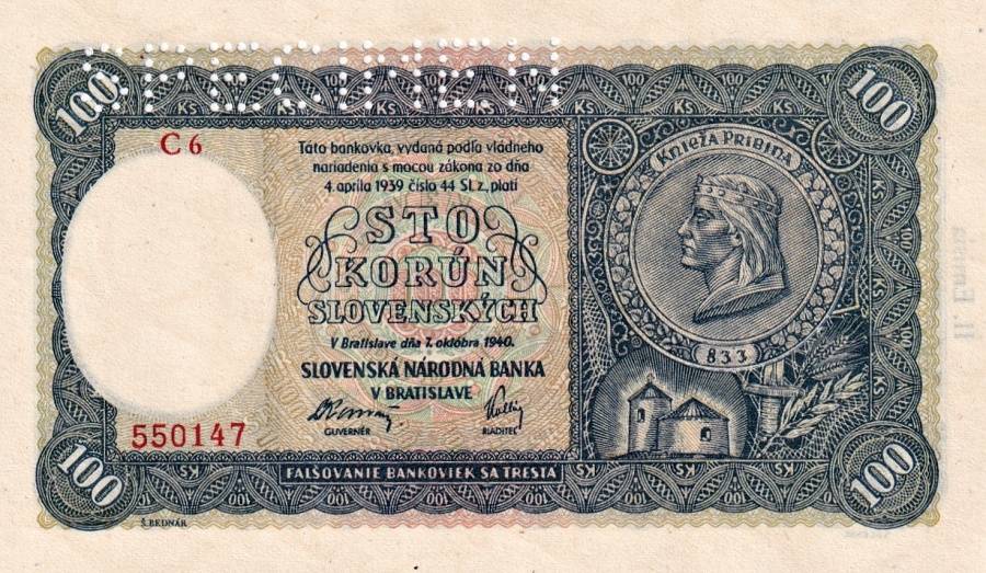 Slovenská republika 1939 - 1945, 100 Ks 1940, SPECIMENSkladem 1 ks750 Kč/ ks
