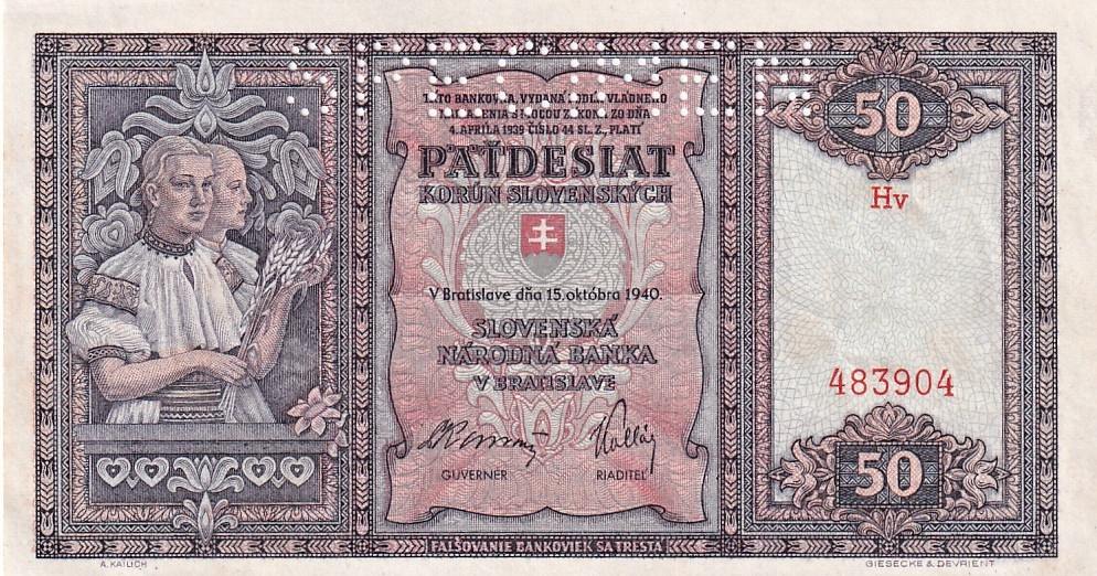 Slovenská republika 1939 - 1945, 50 Korun 1940, SPECIMENSkladem 1 ks1 100 Kč/ ks