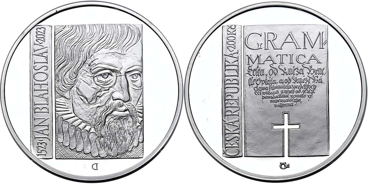 - Česká republika 1993 - , 200 Kč 2023 proof, 500. výročí narození Jana Blahoslava