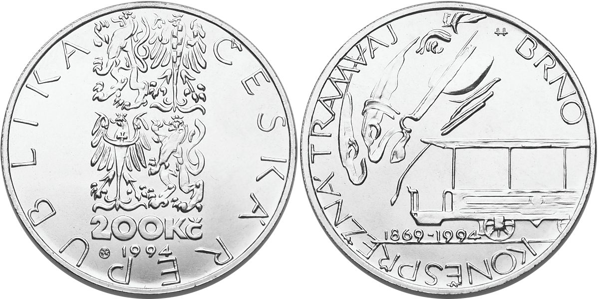 - Česká republika, 200 Kč 1994, běžná kvalita, koněspřežná tramvaj v Brně