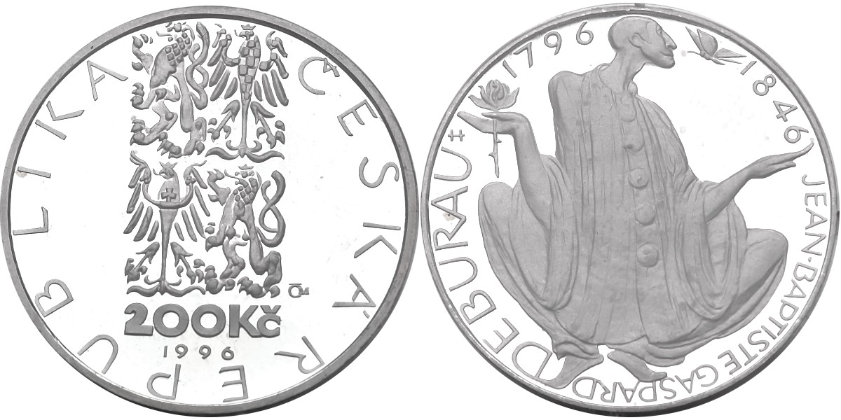 Česká republika, 200 Kč 1996, proof, Jean-Baptiste Garprda Debureaua, oxidační skvrnkySkladem 1 ks7 900 Kč/ ks