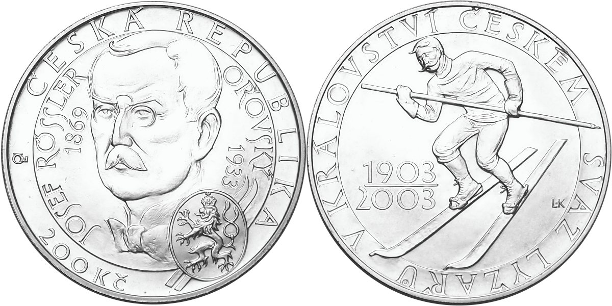 Česká republika, 200 Kč 2003 běžná kvalita, Svaz lyžařůSkladem 2 ks900 Kč/ ks