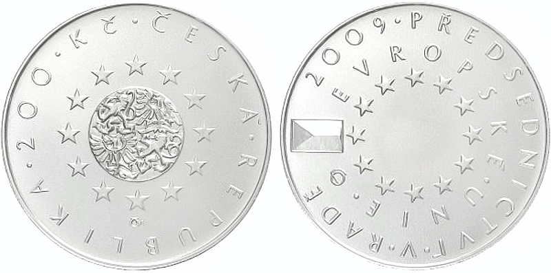 - Česká republika, 200 Kč 2009, proof, předsednictví ČR v Radě Evropské unie