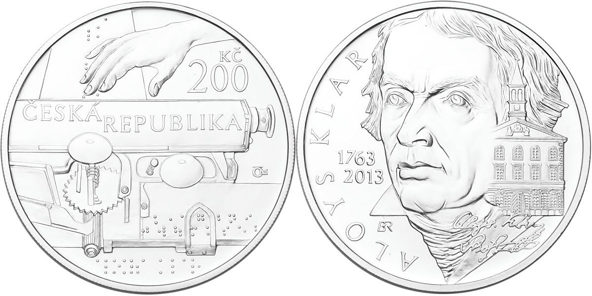 Pamětní stříbrná mince vydaná ke 250. výročí narození Aloise Klara, standard