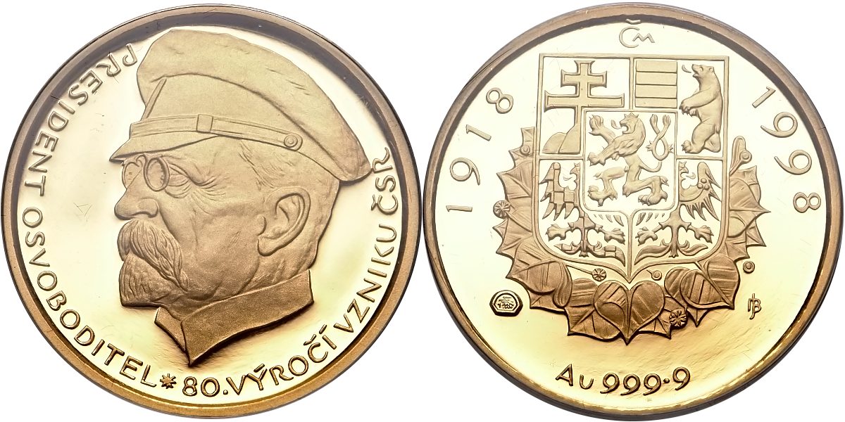 Česká republika - J.Bejvl, Au Medaile k 80. výročí vzniku ČSR - rok 1998Skladem 1 ks28 400 Kč/ ks