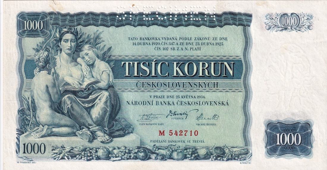Československo 1919 - 1939, 1000 Korun 1934, SPECIMEN