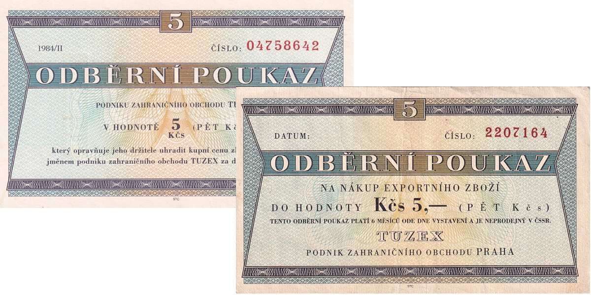 5 Kčs bez datumu(bez razítka vydání) a 1984/II, TUZEX, KŠK.35/V/2a, 56VIII, stav 2+, N, 2 ks