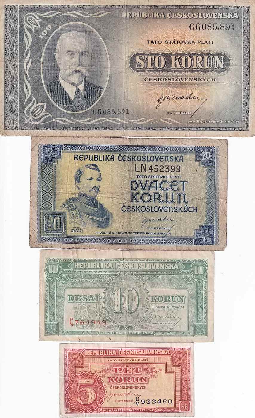 Československo, konvolut bankovek 4ksSkladem 1 ks190 Kč/ ks