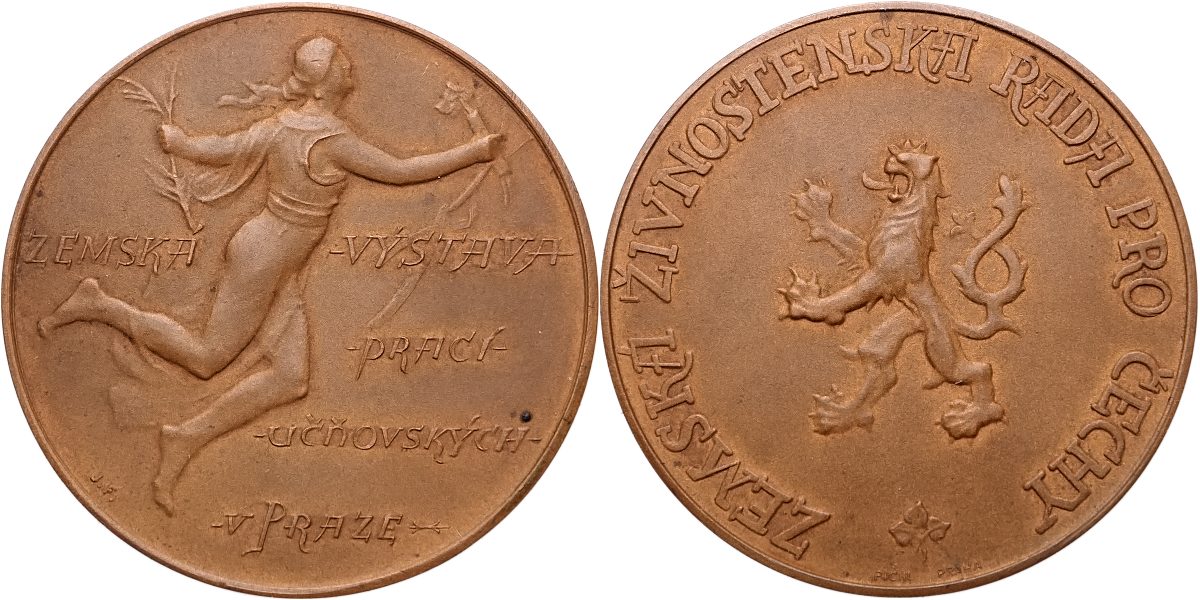 Medaile Zemská živnostenská rada pro Čechy, zemská výstava prací učňovských v Praze, bronz, 43mm, původní etue