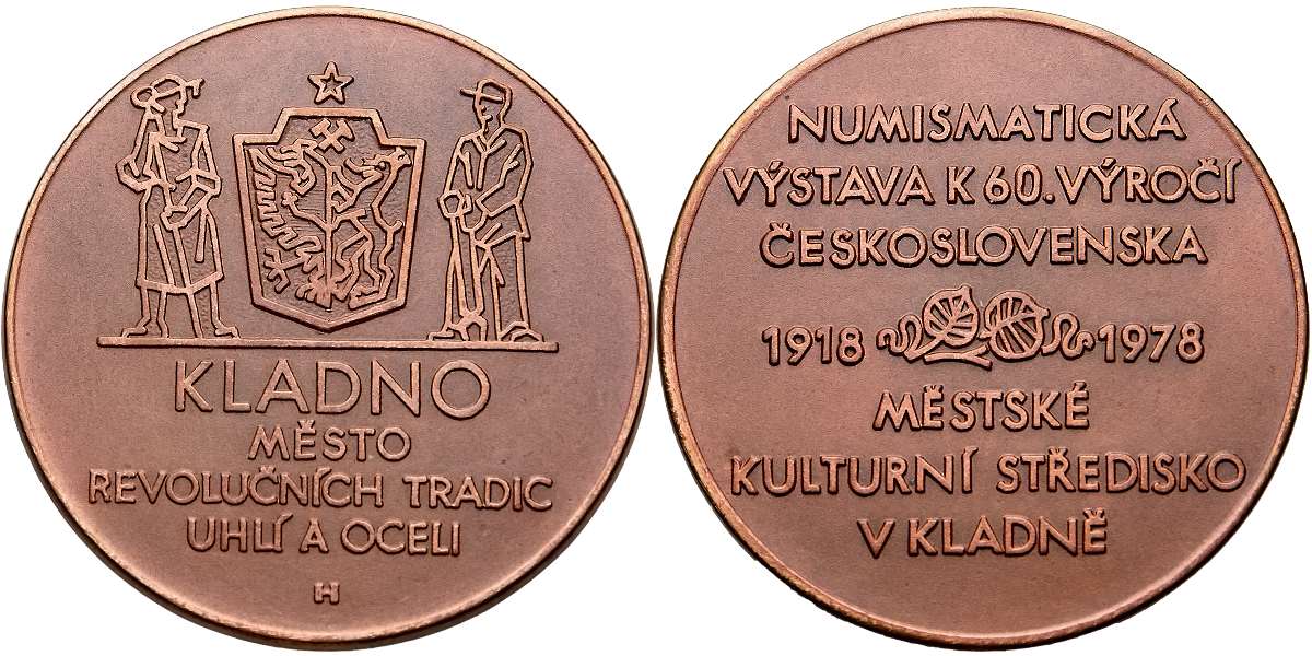 Medaile numismatická výstava k 60. výročí Československa v Kladně, bronz, 40mm