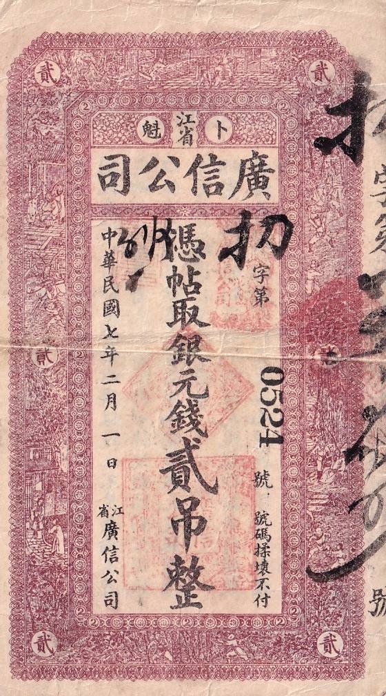 Čína, Kwang Sing Company, 2 Tiao 1918