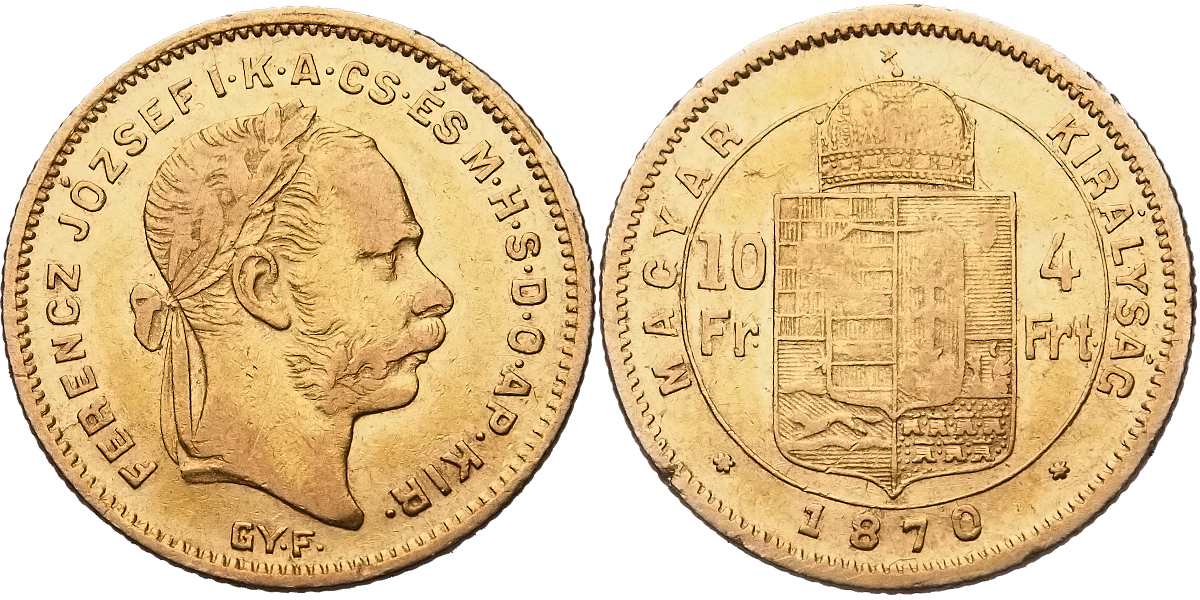 František Josef I. 1848 - 1918, 4 Zlatník 1870 GYFSkladem 1 ks19 300 Kč/ ks