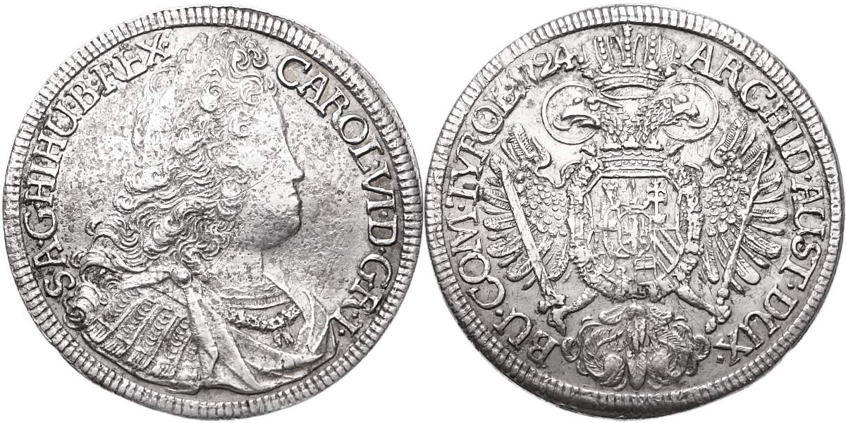 Karel VI. 1711 - 1740, 1/2 Tolar 1724 HallSkladem 1 ks3 250 Kč/ ks