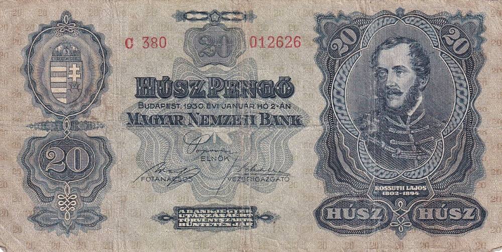 20 Pengö 2.1.1930, Pick.97, stav 3-