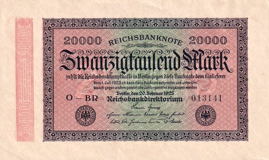 20 000 Mark 20.2.1923, série O-BR, Pick. 85, stav 0