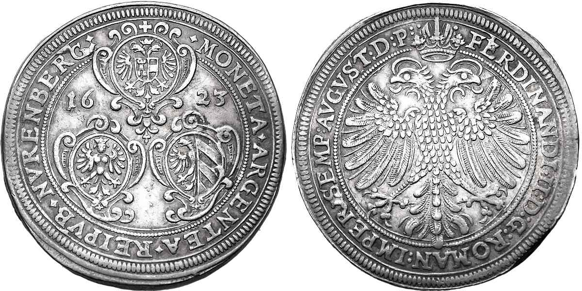 Německo, Nürnberg, Tolar 1623 s titulem Ferdinanda II.