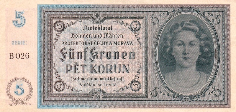 Protektorát 1939 - 1945, 5 Korun b.l. (1940)