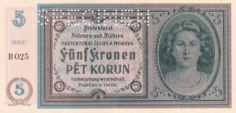 Protektorát 1939 - 1945, 5 Korun b.l., SPECIMEN (1940)