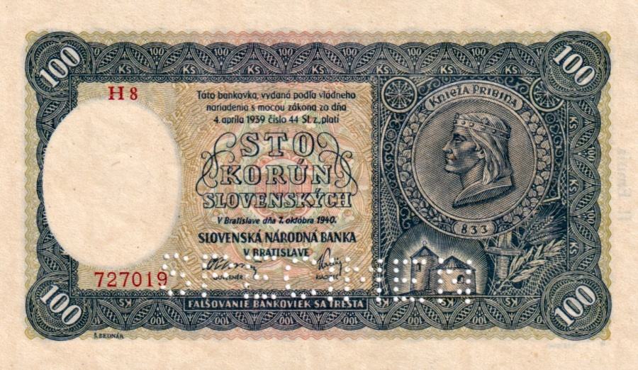 Slovenská republika 1939 - 1945, 100 Ks 1940, SPECIMENSkladem 1 ks750 Kč/ ks