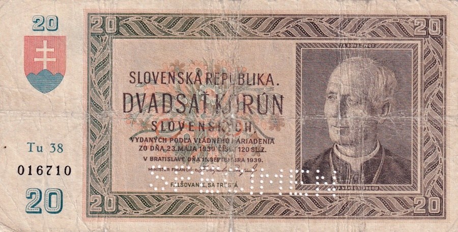 Slovenská republika 1939 - 1945, 20 Korun 1939 SPECIMEN