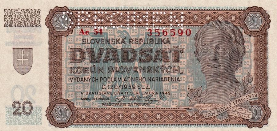 Slovenská republika 1939 - 1945, 20 Korun 1942, SPECIMEN