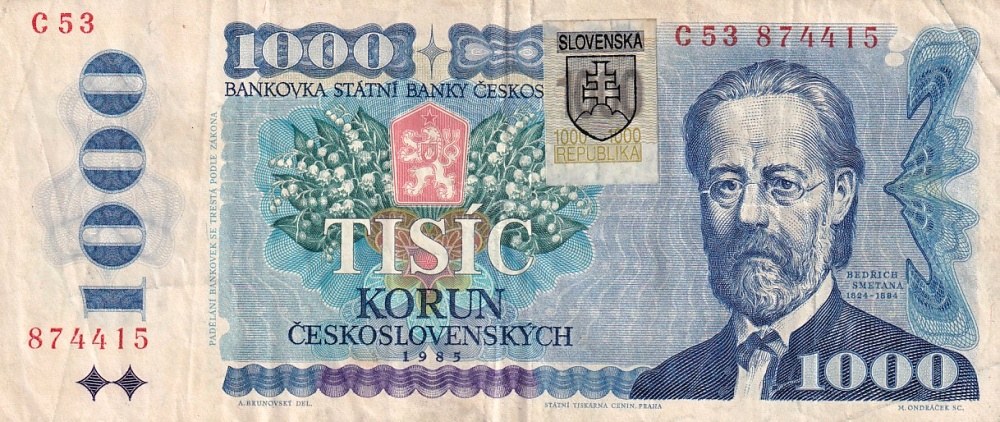 Slovensko, 1000 Koruna 1985 kolek 1993