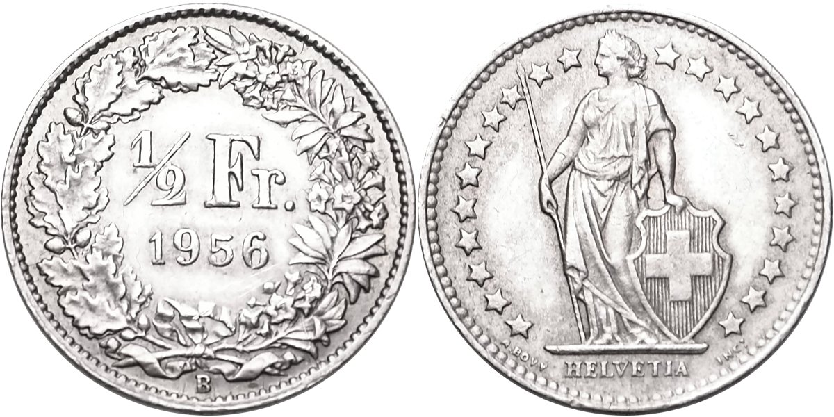 Švýcarsko, 1/2 Frank 1956Skladem 1 ks150 Kč/ ks